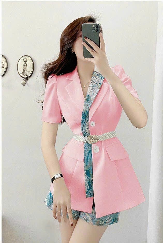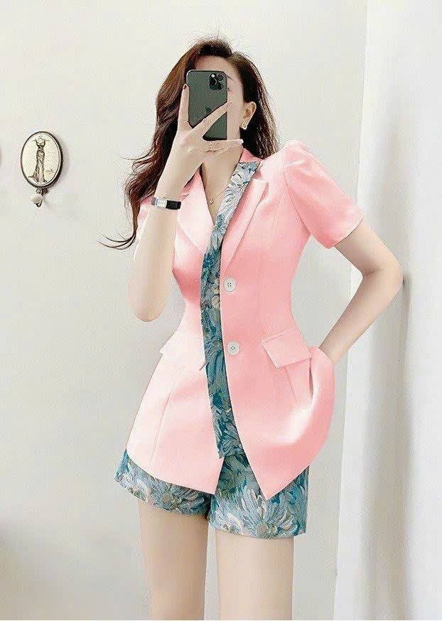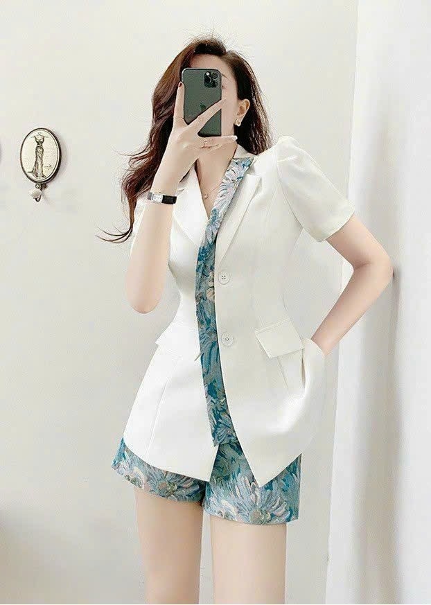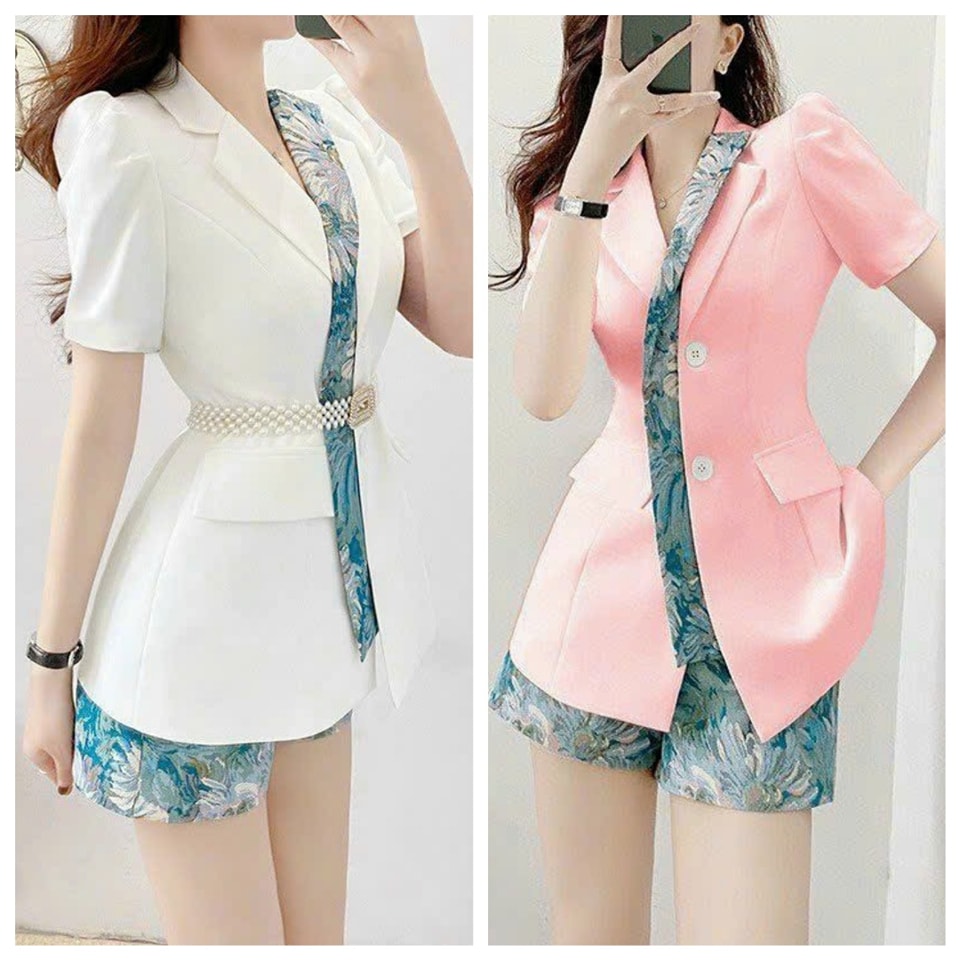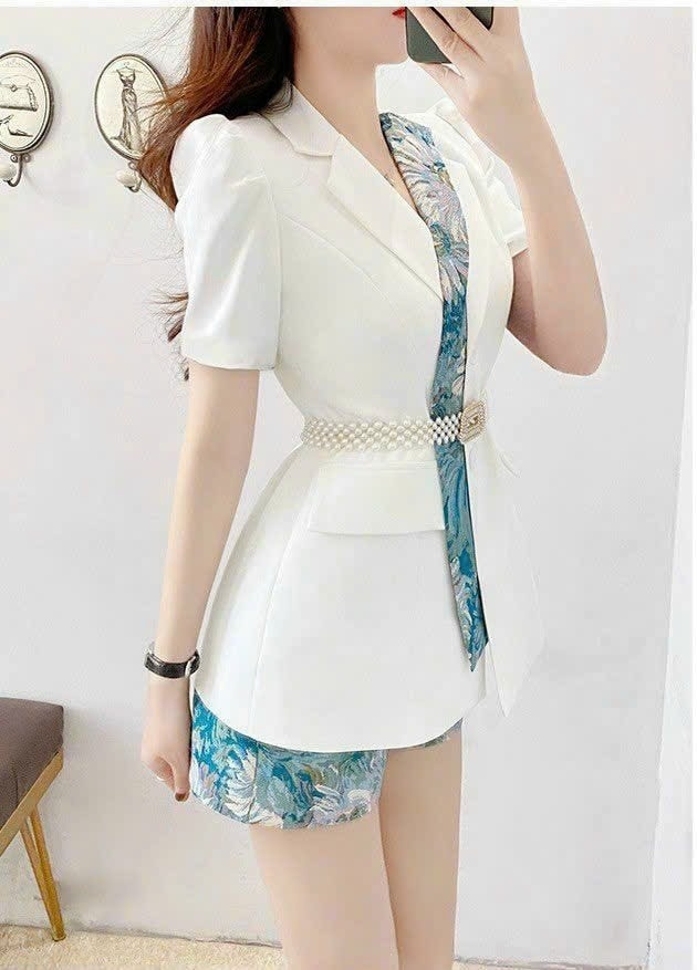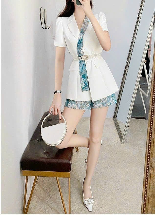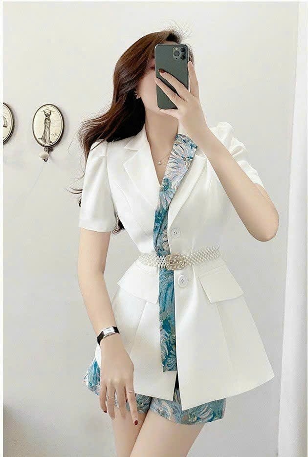 Set bộ vest nữ áo phối họa tiết + quần short họa tiết trẻ trung năng động