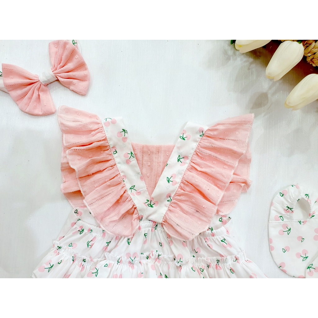 Thời trang trẻ em & trẻ sơ sinh > Quần áo trẻ em > Bộ đồ liền thân || Set Body cherry siêu ngọt kèm turban và giày vải cho bé gái ⚡𝗙𝗥𝗘𝗘𝗦𝗛𝗜𝗣⚡ Hàng thiết kế - Chất liệu mềm mát và an toàn