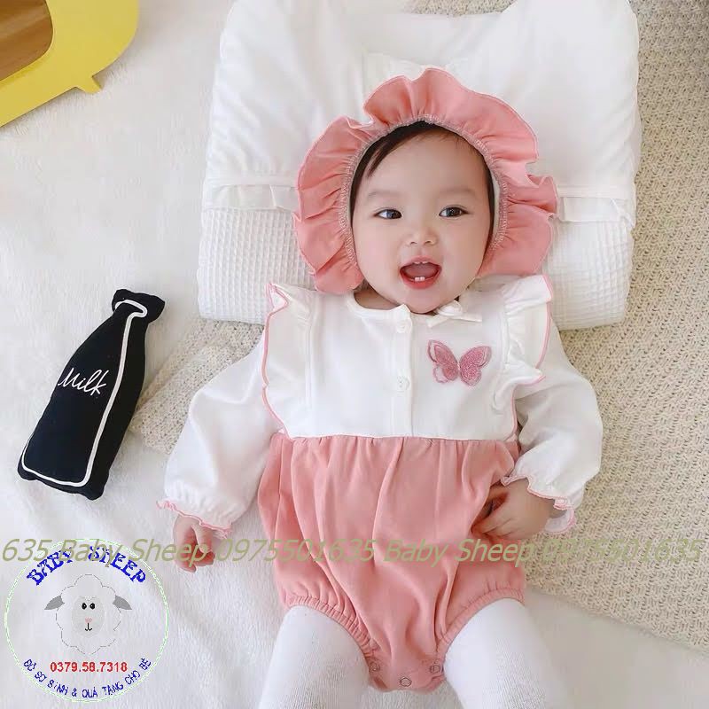 Giới thiệu Sét body chip bèo trắng phối đỏ đính cánh bướm kèm mũ tiểu thư dành cho bé gái sơ sinh đầy tháng thôi nôi