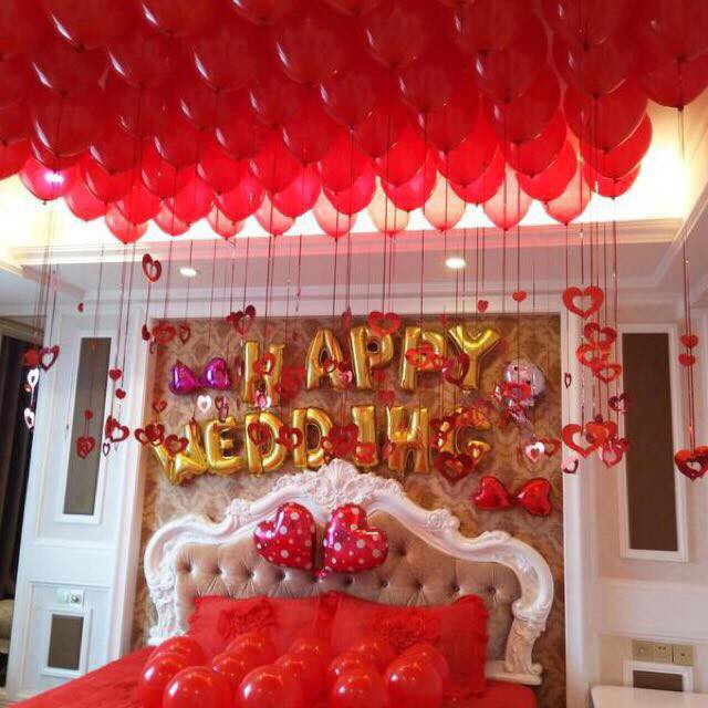 Giới thiệu set bóng bay trang trí phòng cưới, phòng cô dâu chú rể, phòng tân hôn (tùy chọn màu theo ý thích)