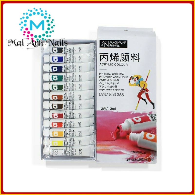 Giới thiệu Sét Bột Vẽ Cọ Bản 12 Màu Chuẩn Đẹp MAGI-WAp Acrylic Color