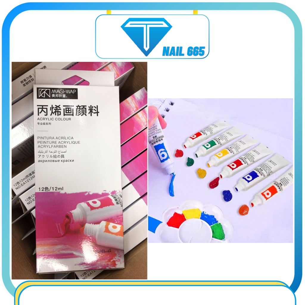 Giới thiệu Sét bột vẽ cọ bản nail 12 ô màu , Sét gel vẽ nail siêu đặc chính hãng