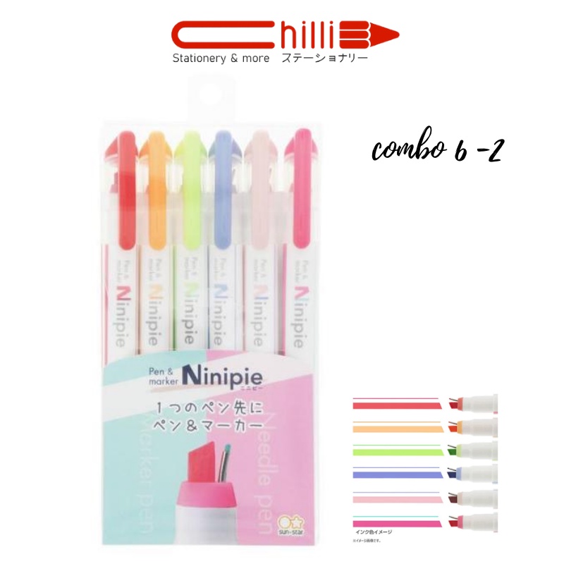 👉 2 đầu: ngòi kim + highlight 👉 Màu sắc: 12 màu 👉 Màu mực: Nhiều màu 👉 Xuất xứ: Nhật Bản