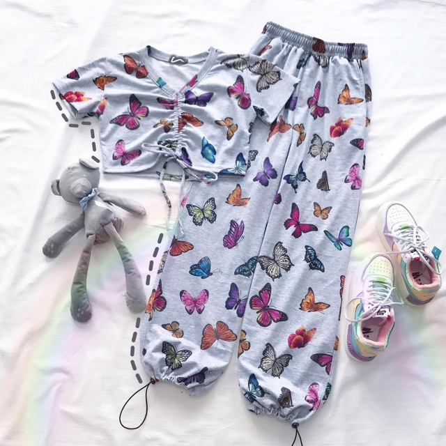 Set Butterfly Bướm CropTop Dây Rút+ Quần Long Pant Kèm Ảnh Thật