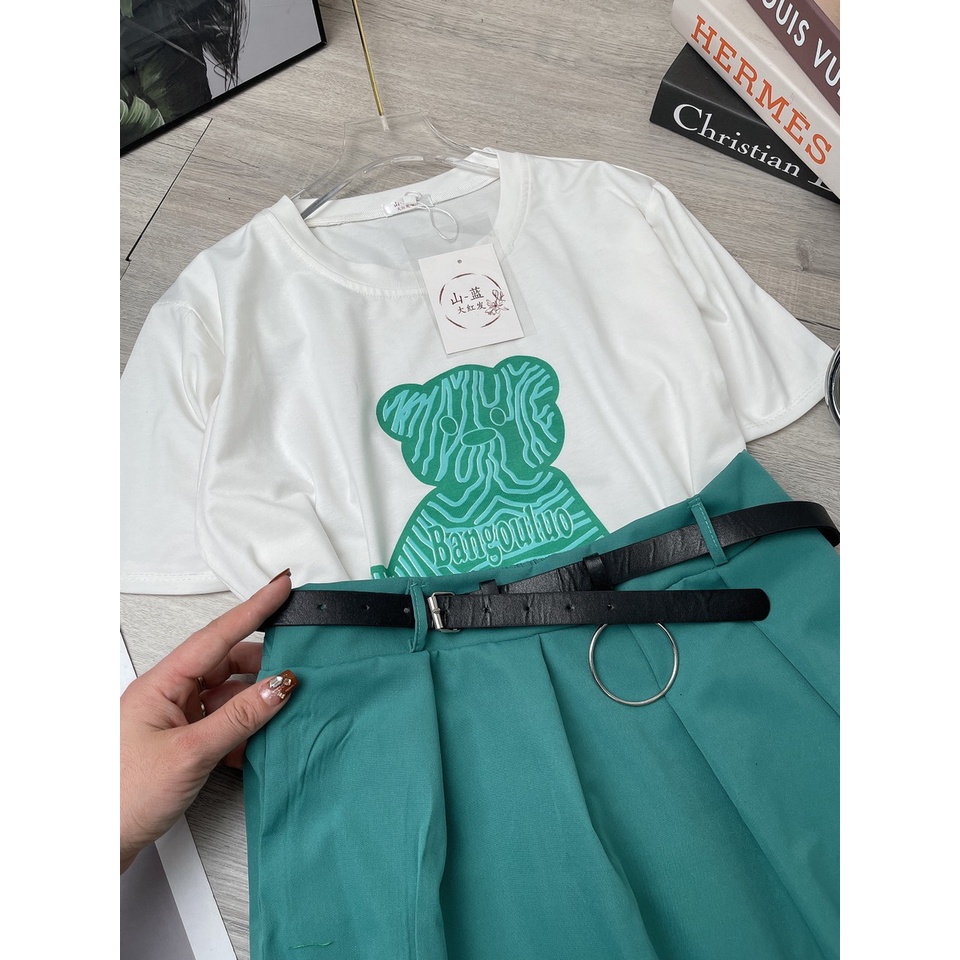 Giới thiệu Set chân váy áo phông gấu xanh chân váy kèm đai thắt eo TH654