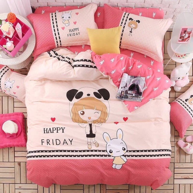 Set gồm 1 ga chun/phủ, 2 vỏ gối nằm 50x70cm, 1 vỏ chăn 2m2 có khoá lồng thêm đc ruột