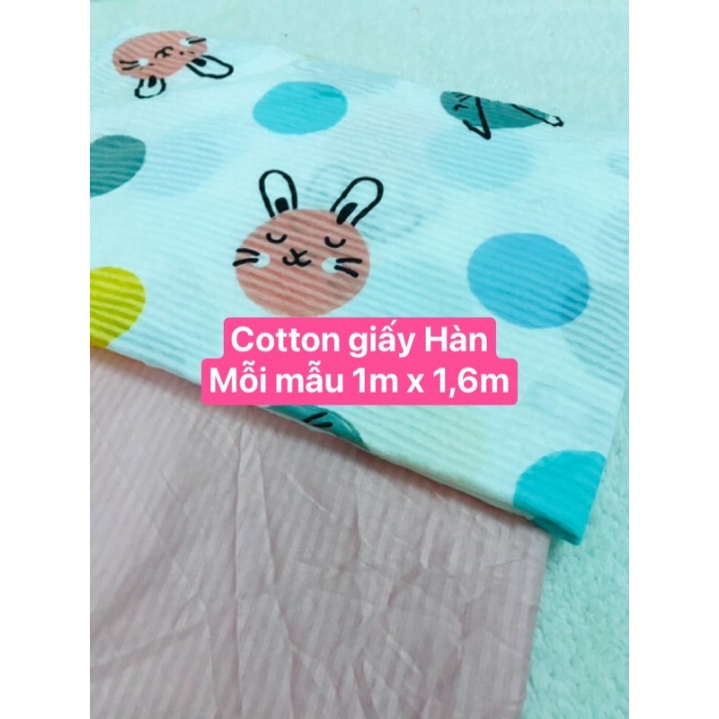 - 1m x 1,6m thun coton giấy Hàn hoạ tiết thỏ nền trắng