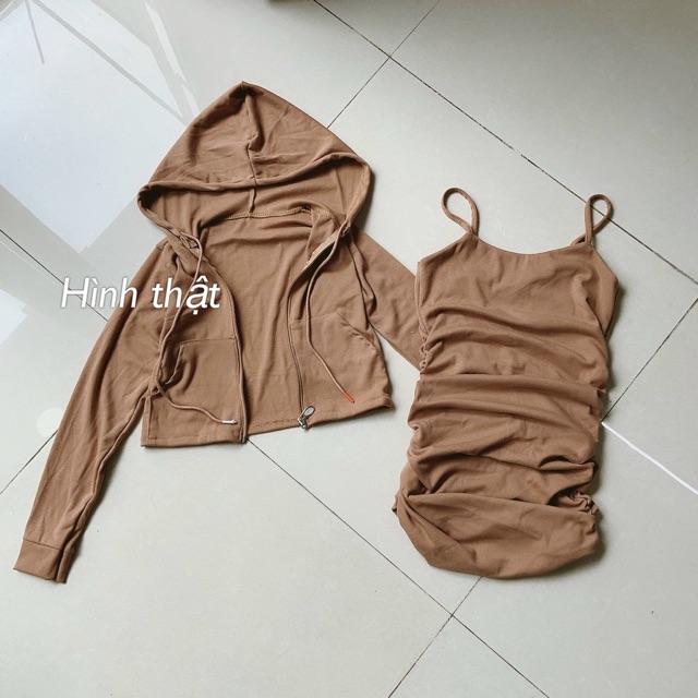 Thời Trang Nữ > Bộ > Bộ đồ đôi || Set đầm nhún và áo khoác nón chất thun borip cao cấp - R5U