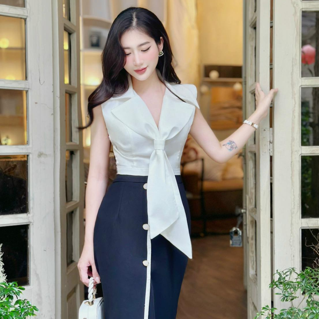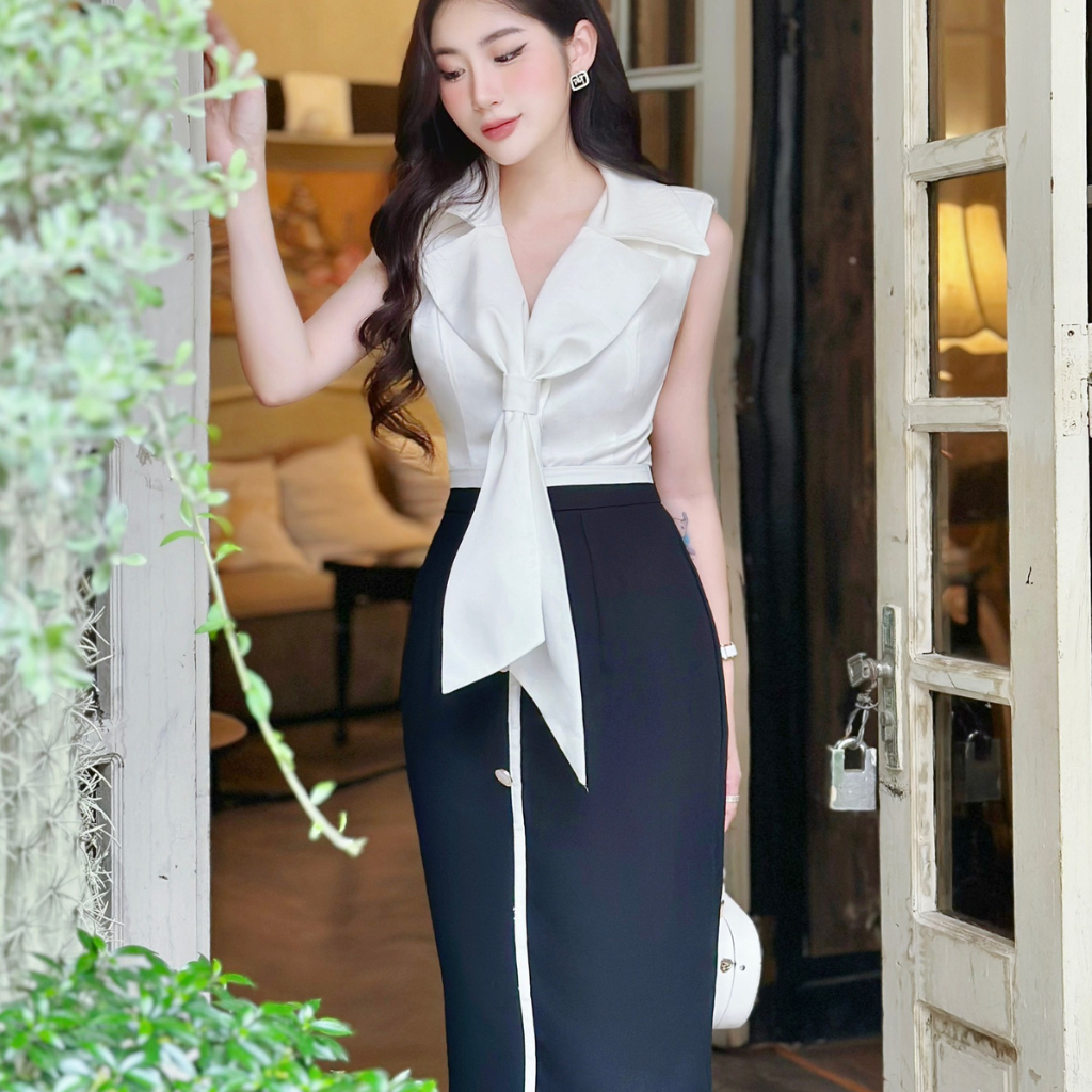 - Màu sắc: Váy thiết kế MAY CH113 có màu Trắng phối Đen sang trọng, thanh lịch và dễ mặc, vừa làm gọn dàng vừa làm sáng và nâng tông da người mặc từ 1 – 2 tông.