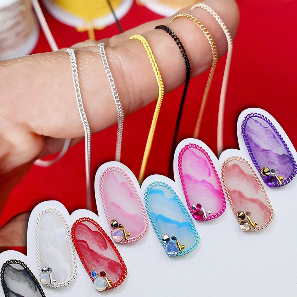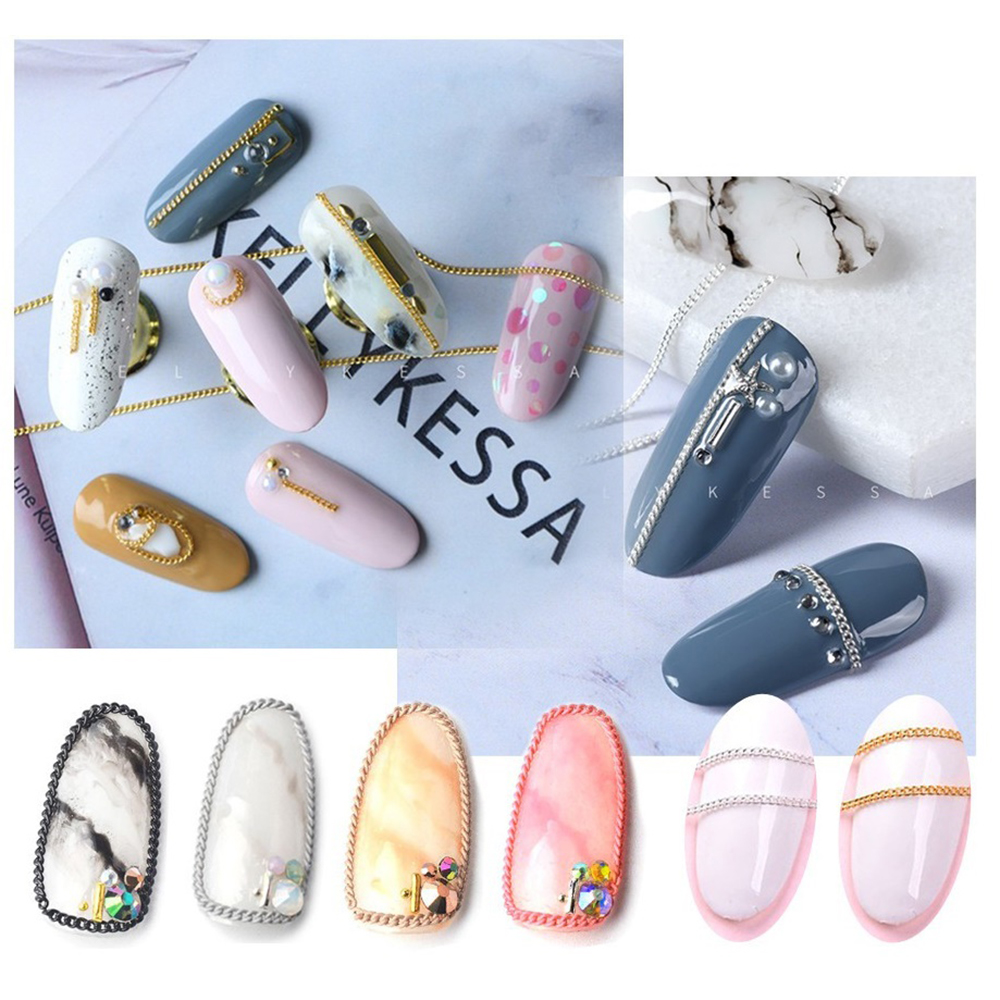 Mẫu dây xích được thiết kế theo dạng sợi nhỏ và phủ màu hợp kim, siêu mỏng để dễ dàng thực hiện ẩn trong gel, dán móng, tạo nên các bộ nail nghệ thuật