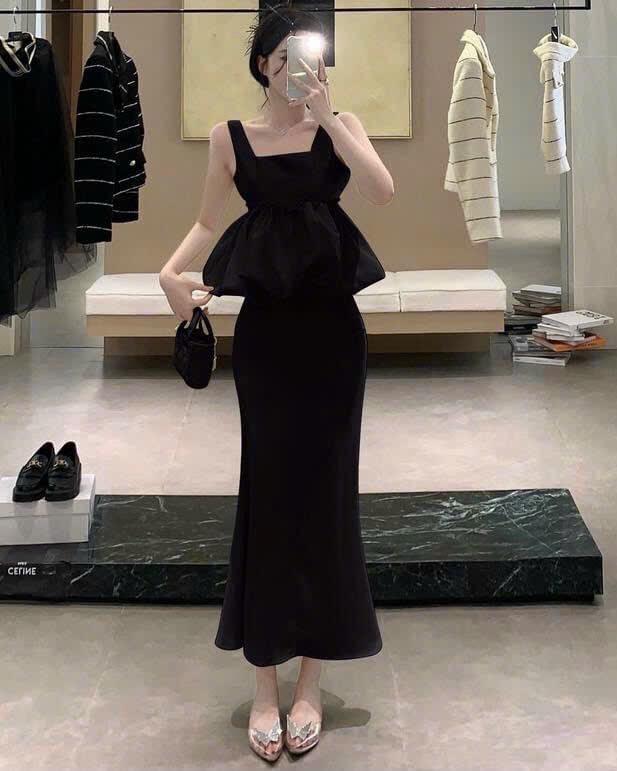 SET ĐI TIỆC, SET 2 MÓN ÁO BÍ CỔ VUÔNG DÂY PHỐI CHÂN VÁY ĐUỐI CÁ DÀI CỰC HOT