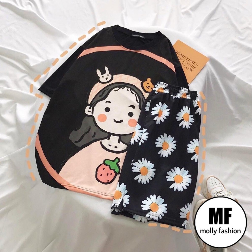 Giới thiệu Set đồ bộ hoạt hình ❤️ Bộ mặc nhà Cartoon GIRL DÂU ĐEN form rộng Freesize Molly Fashion