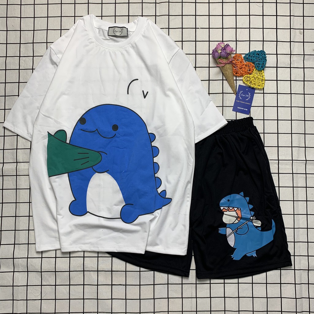 Giới thiệu Set Đồ Bộ Khủng Long " Kéo Áo" Đáng Yêu cartoon 3D Cute -Lapi VN Quần Đùi Vải Thun Cotton, Freesize,Tay Lỡ