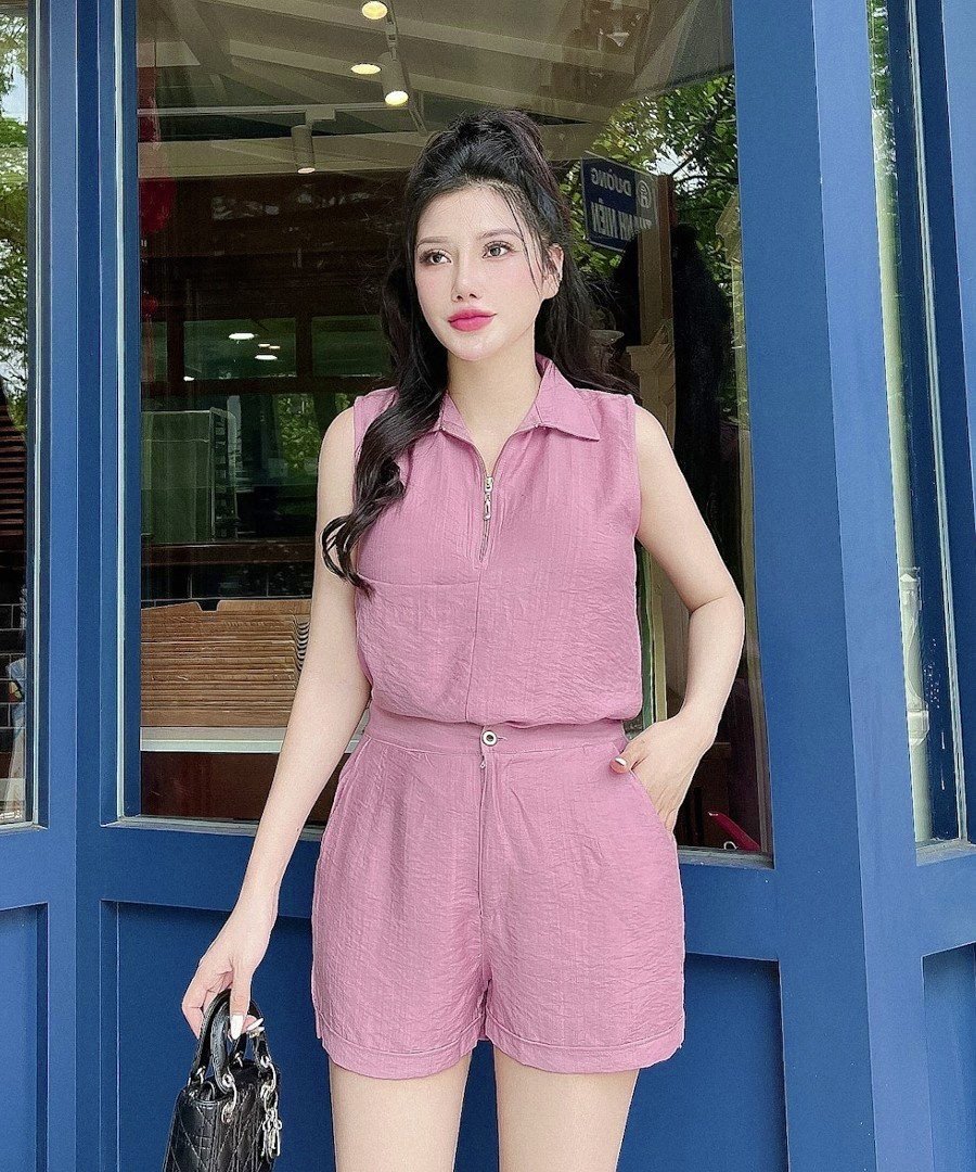- Kiểu dáng: Áo dáng suông cổ bẻ phối dây kéo, không tay. Quần dang sort ngắn dây kéo trước, 2 túi sườn