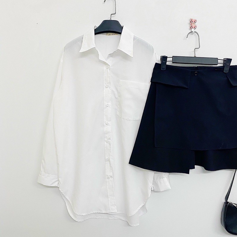 Set Đồ JIKO SET gồm chân váy đen và áo sơ mi trắng mặc được 2 kiểu form chuẩn