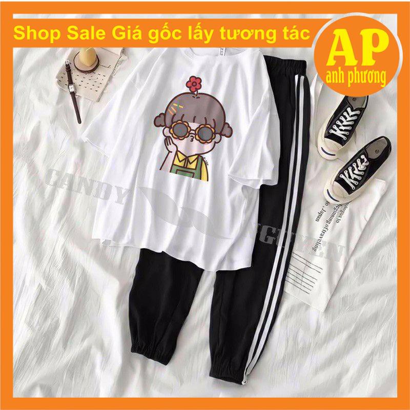 Sét đồ nữ áo Bò Sữa ; áo cô gái unisex + quần chun ống giá rẻ