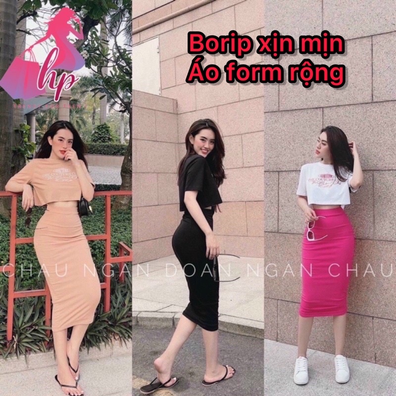 Set đồ nữ áo croptop ngắn tay cổ bẻ kèm váy dài ôm body thun xịn mịn mẫu mới sang chảnh 2021 trend hàn quốc