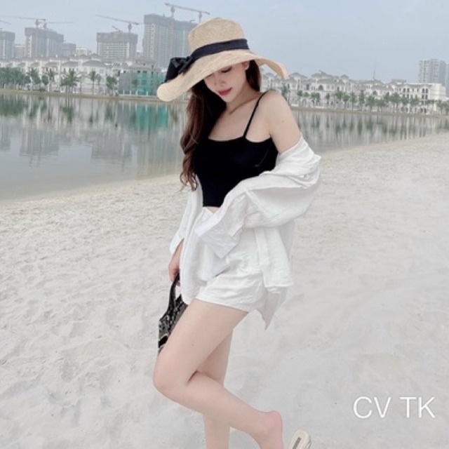 Set Đồ Nữ Đi Biển thêm chi tiết chun dây rút tạo sự khác biệt cho chiếc áo sơ mi trắng basic, mang sự năng động-cá tính cho set đồ. ▪️ Size: Freesize ▪️ Set gồm: 1 áo sơ mi + 1 quần short lưng chun cao cấp có lót - 1 áo 2 dây ▪️ Chất liệu: Voan Cotton Cao Cấp