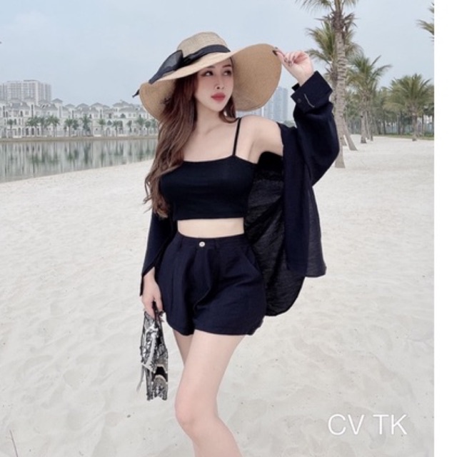 Giới thiệu Set Đồ Nữ Đi Biển, Set Sơ Mi Nữ Cá Tính Freesize Hai Món Nhiều Màu Chất Vải Đũi Thoáng Mát