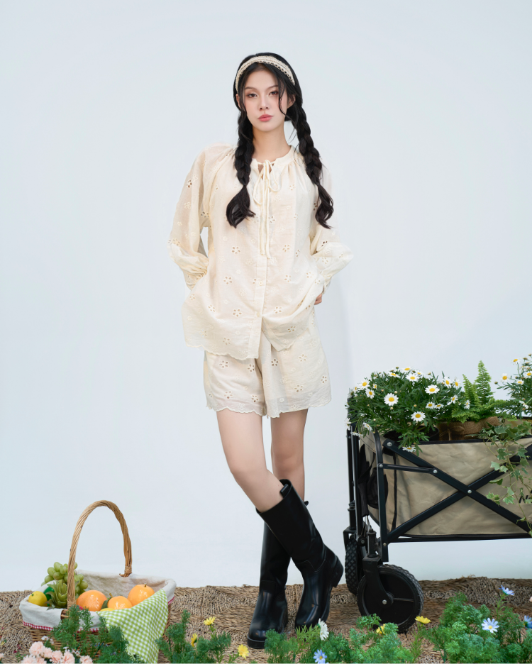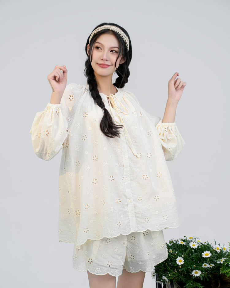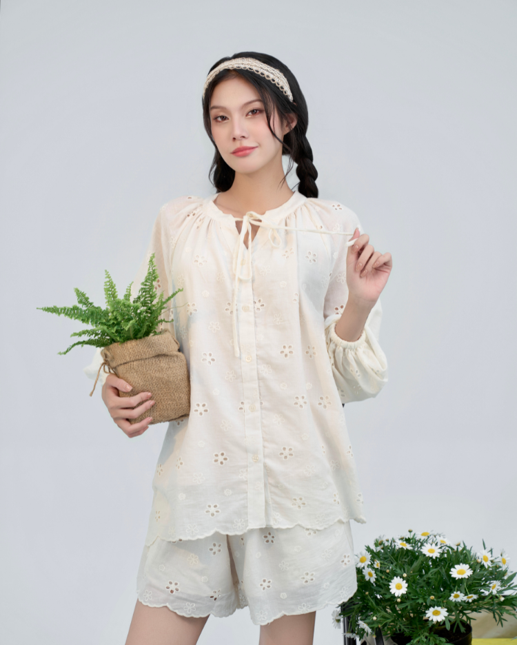 ✿ Sản phẩm : Set đồ nữ thêu hoa gồm áo dài tay kèm quần short phong cách vintage Aster Miều Est.2013