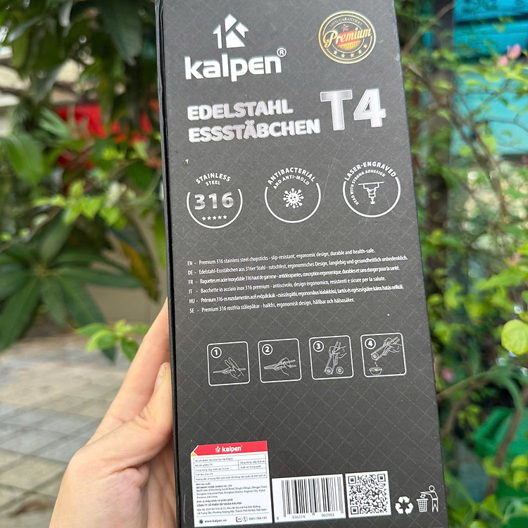 - Thân đũa inox Kalpen vuông, thuôn nhỏ dần về đầu, chống trơn trượt khi cầm nắm