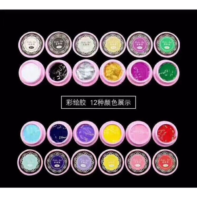 Sét gel vẽ 12 màu, 💅🏽💅🏽💅🏽lên màu chuẩn , chất gel không quá đặc , không quá lỏng , thích hợp cho việc vẽ nổi , vẽ chìm .