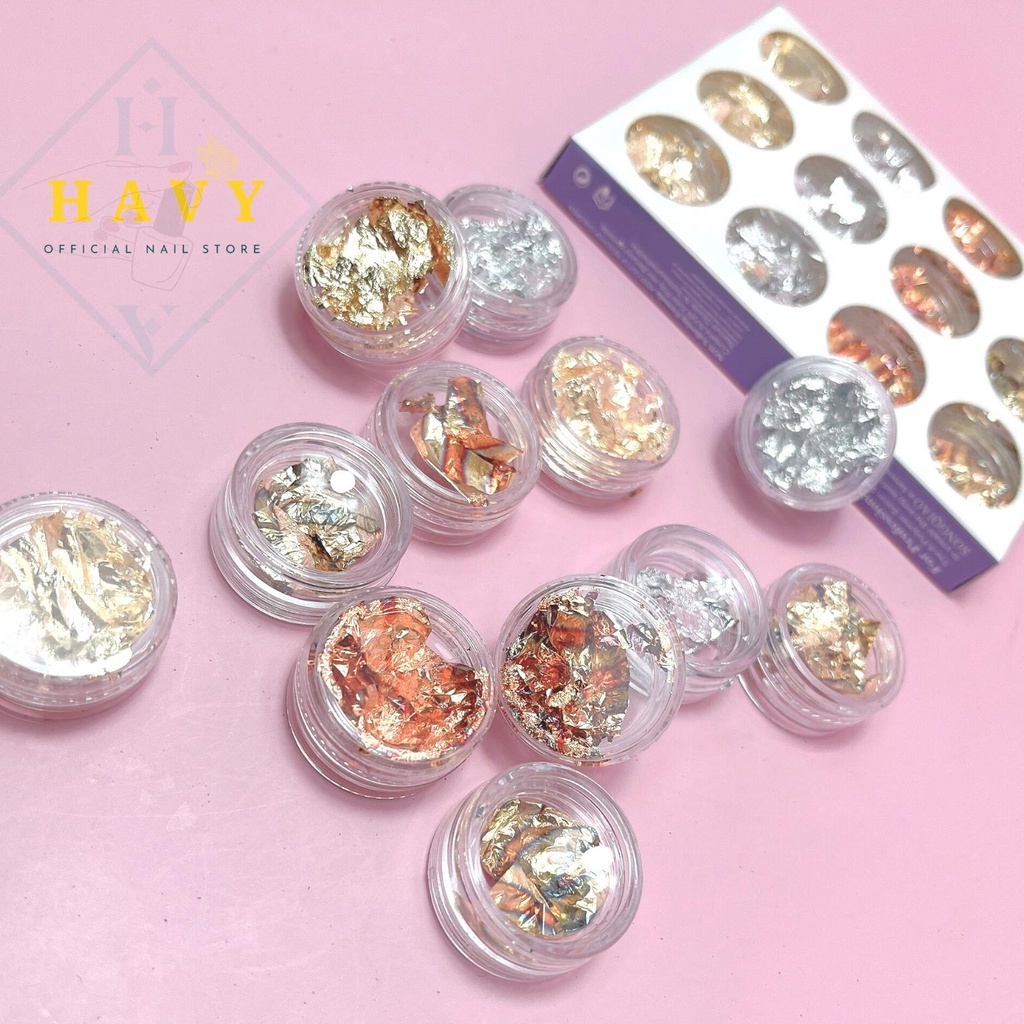 SET GIẤY BẠC 4 MÀU, SET FOIL GIẤY BẠC, SET GIẤY NHÚN * Mô tả sản phẩm : - Giấy nhún vàng bạc là dụng cụ không thể thiếu trong ngành nail khi chúng ta trang trí - Giấy nhún dùng để ẩn và trang trí trong ngành nail - Giấy nhún giúp phối hợp tạo ra những bộ nail đẹp mắt - 1 Set 12 hũ gồm 4 MÀU THÔNG DỤNG - Chất liệu: giấy nhún - Màu sắc: vàng, bạc , đồng và vàng đồng