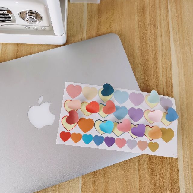 Set hình dán tròn, trái tim sắc màu, phụ kiện trang trí gắp thiệp