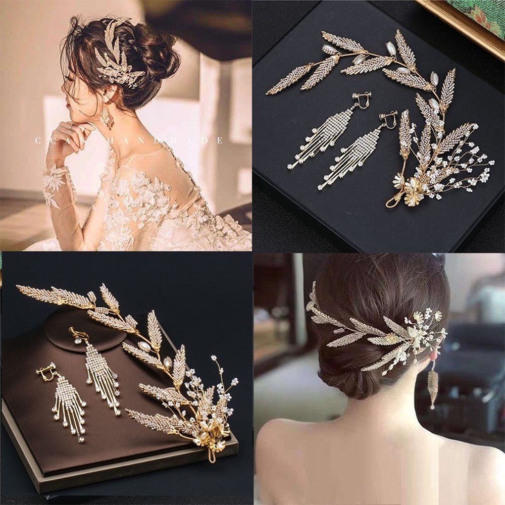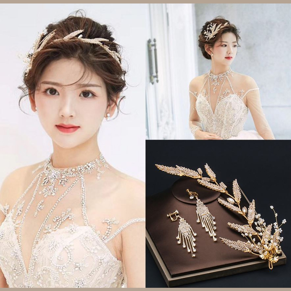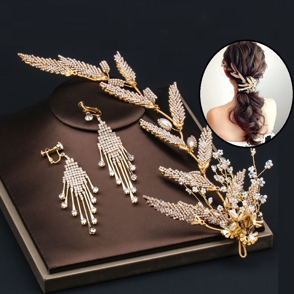 SET HOA CÀI TÓC KÈM BÔNG TAI MỸ KÝ HÌNH LÁ