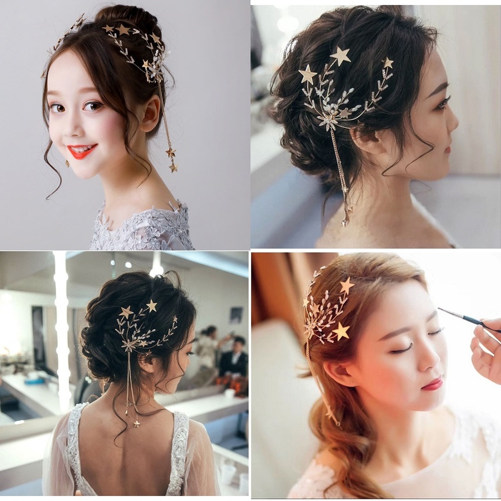 Thiết kế những ngôi sao trẻ trung, đính đá và hạt cườm, đính dọc theo dây cài tóc