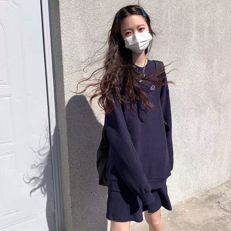 Giới thiệu Set Icon Mặt Cười Nhỏ PEONYB Nữ [FREESHIP] Bộ quần short ống rộng kèm áo thun dài tay bồng, sweater cá tính Ulzzang