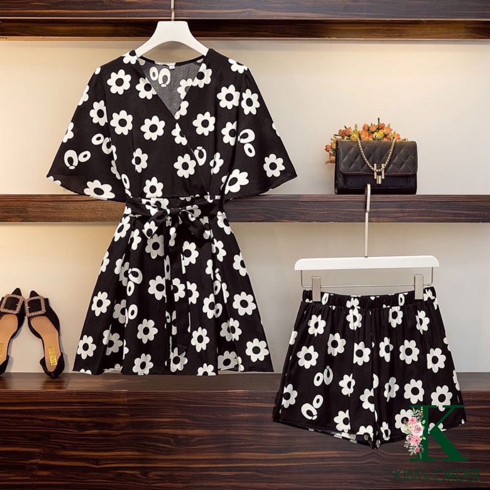 Set jumpsuit hoạ tiết mùa hè loại 1 tặng quần đùi hoạ tiết