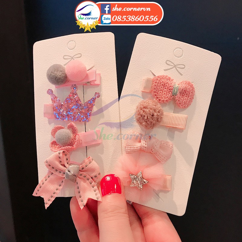 Giới thiệu Set kẹp tóc công chúa Hàn Quốc K002 màu hồng nhiều mẫu dễ thương