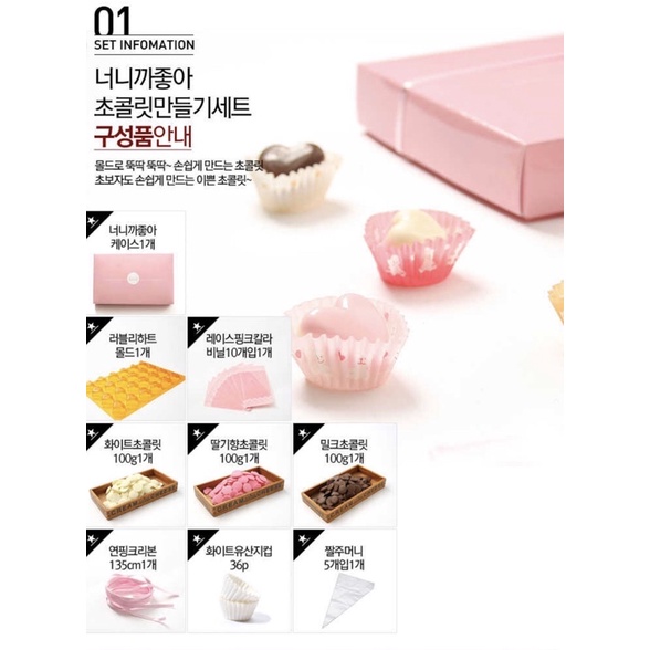 Thực phẩm và đồ uống > Đồ ăn vặt > Sô cô la || Set làm Chocolate Valentine / Bộ tự làm Sô cô la Hàn Quốc