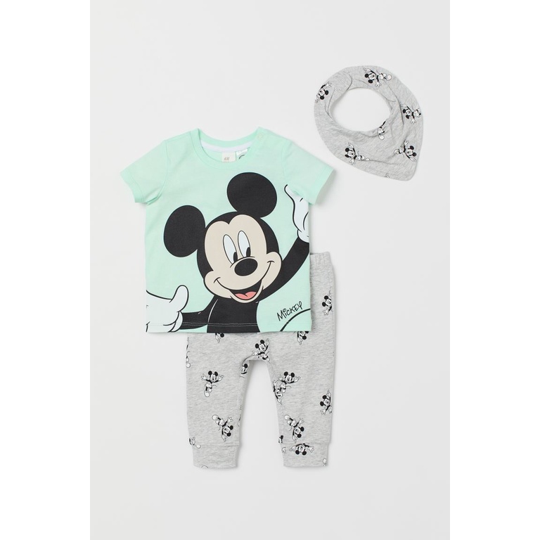 Set Mickey xanh bạc hà gồm yếm, áo thun ngắn, quần dài, Hờ mờ US săn SALE
