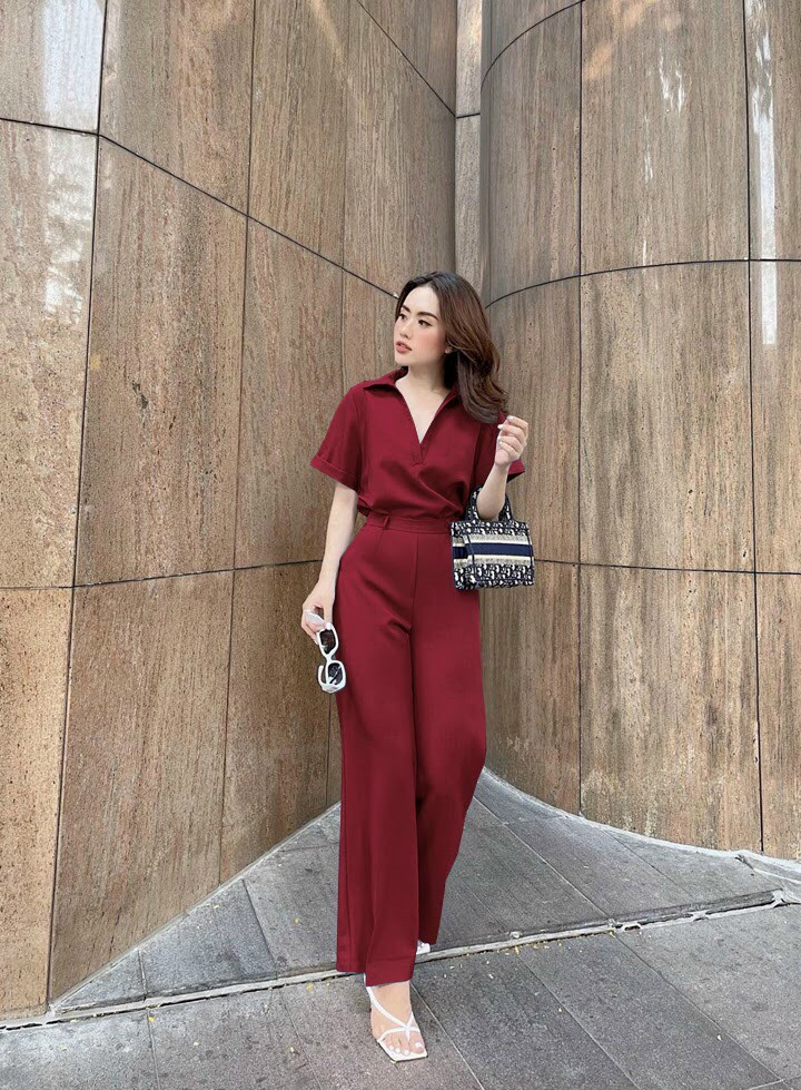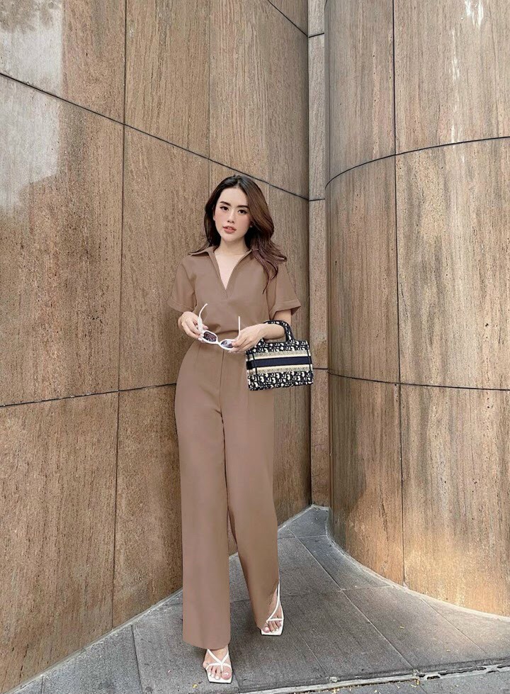 Set nguyên bộ áo sơ mi quần dài ống suông xinh xắn