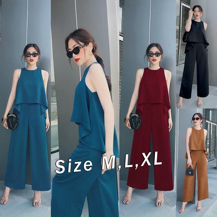 Set nguyên bộ quần dài ống suông dây kéo sau lưng áo đuôi cá xinh xắn