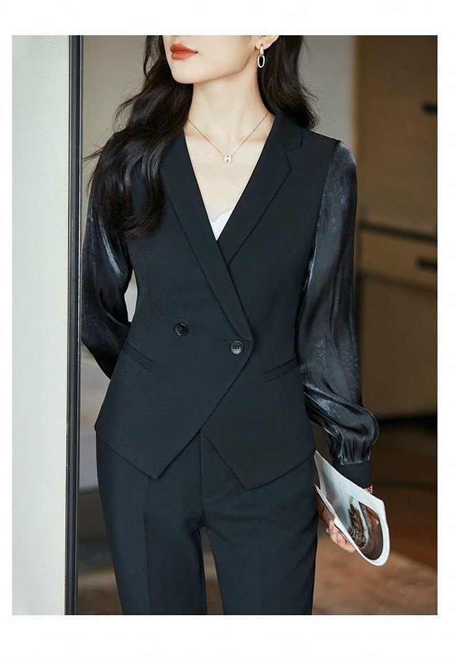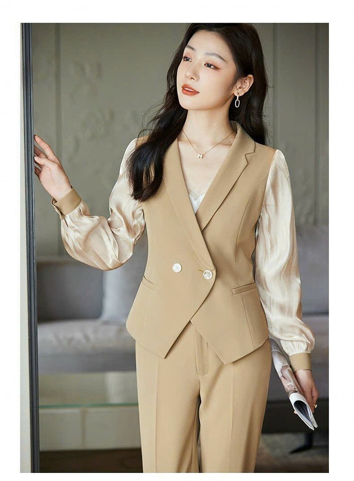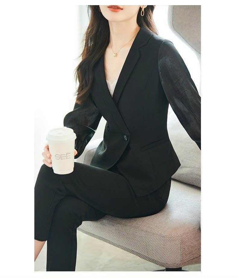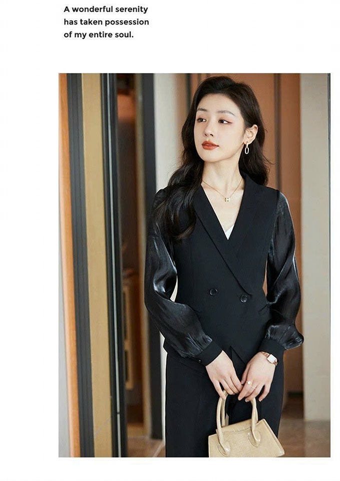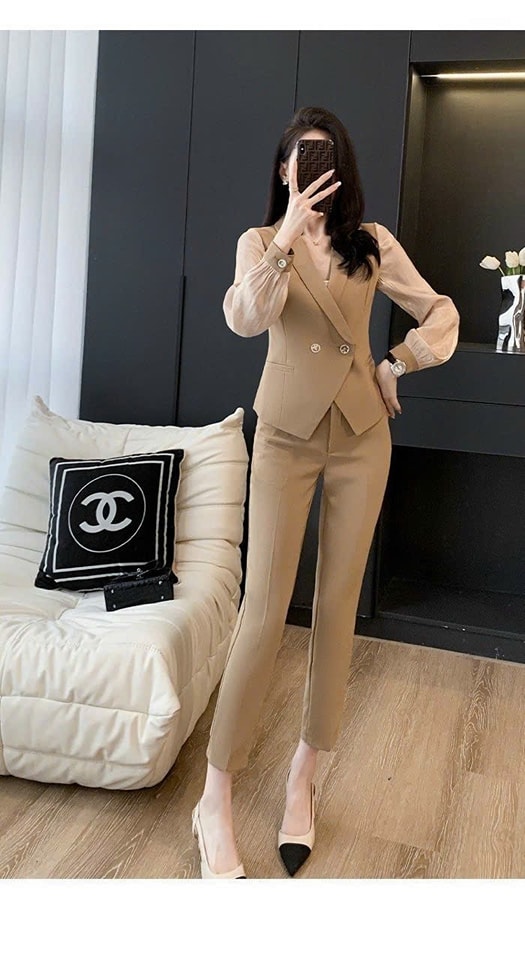 Set Nguyên Bộ Vest Kiểu Phối Nút Tay Voan Cao Cấp