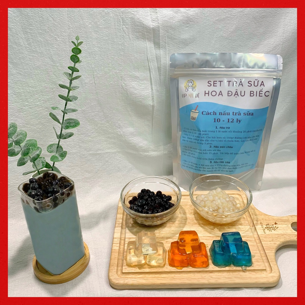 Giới thiệu Set Nguyên Liệu Trà Sữa Hoa Đậu Biếc Nấu 10 - 12 Ly Full Topping - UP MÌ ĐÊ