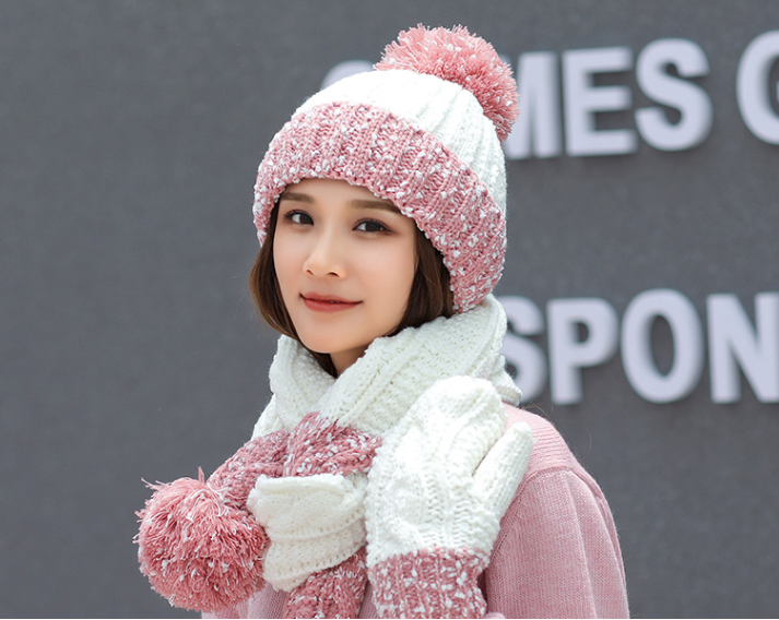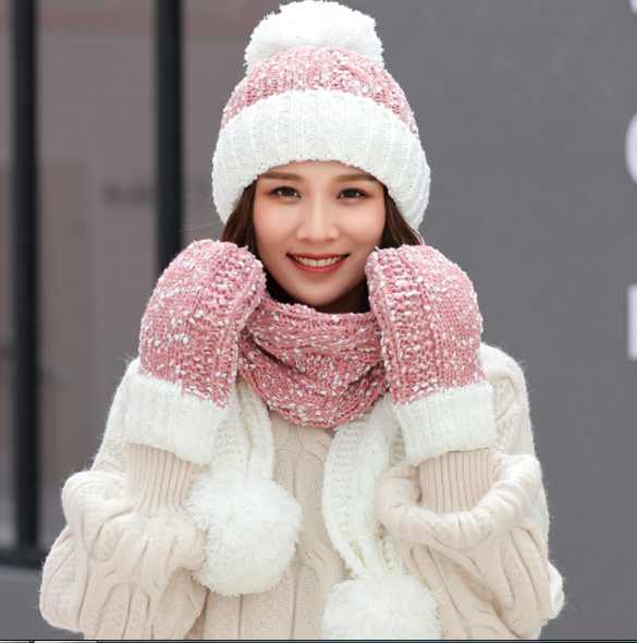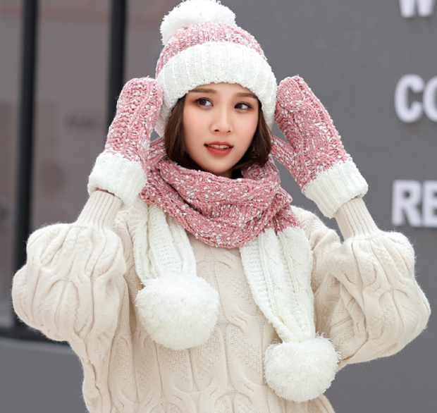 Sét nón len nữ kèm khăn và găng tay phong cách Hàn, bộ mũ len nữ lót nỉ cao cấp