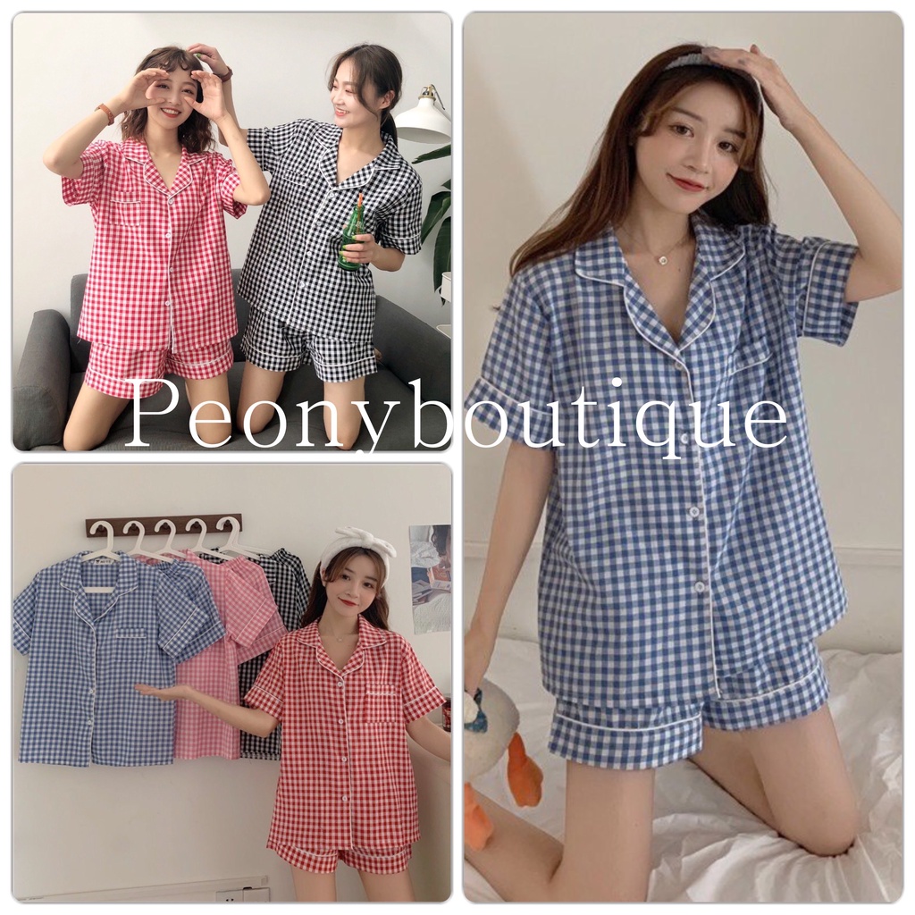 Thời Trang Nữ > Đồ ngủ > Pyjama || Set Pijama Cộc Tay Kẻ Caro PEONYB Nữ [FREESHIP] Bộ đồ ngủ mặc ở nhà, áo thun form rộng kèm quần short cá tính Ulzzang