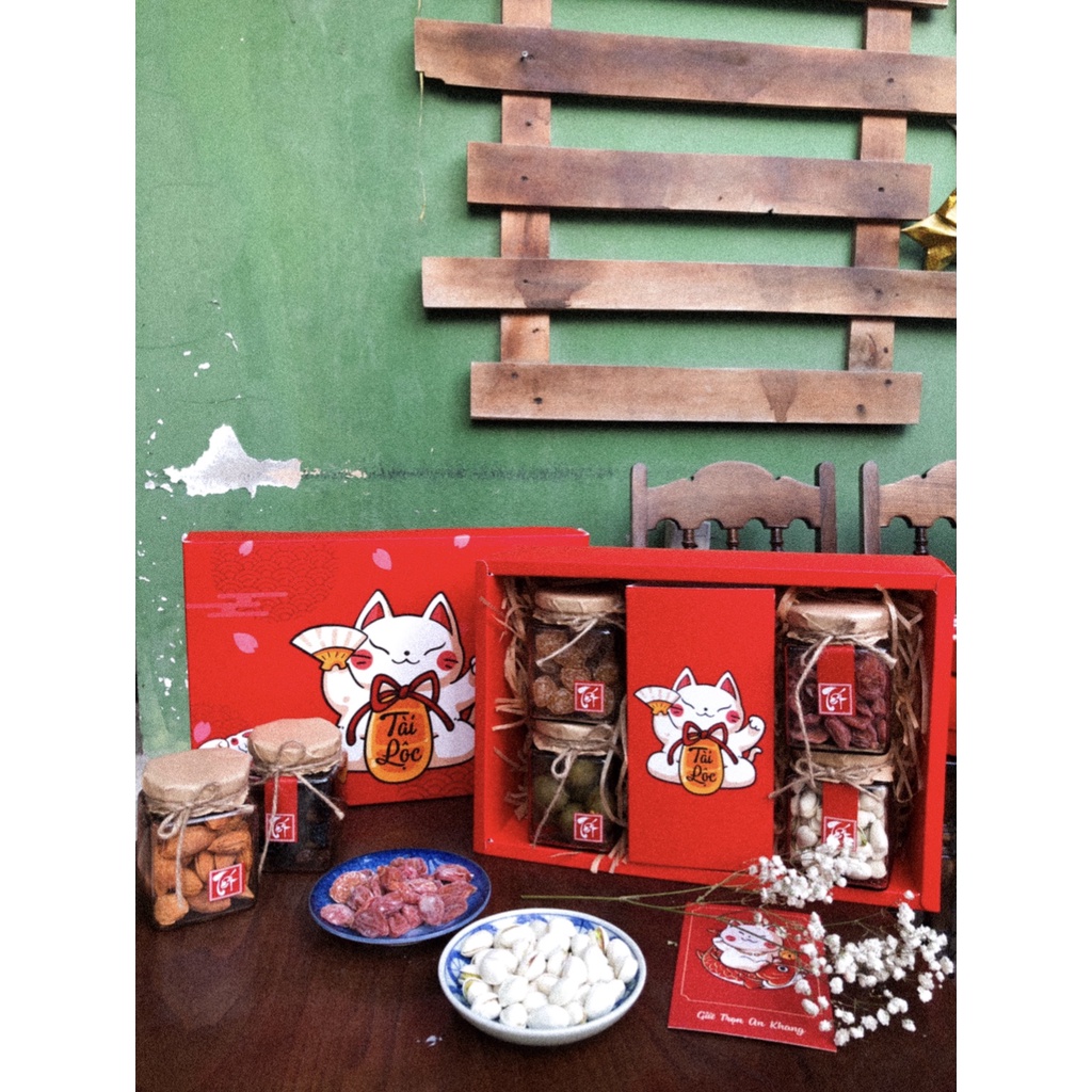Giới thiệu Set quà tết 2022 Mèo tài lộc 4 lọ - mứt nhà làm quà Tết rẻ đẹp, mứt tết, ô mai, hạt dinh dưỡng