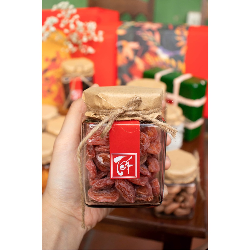 🌸🌸 QUÀ TẾT HANDMADE 2022 TẠP HOÁ HAI CÔ 🎁🎁 Lọ thuỷ tinh ------------------------------------------------ Vì sao nên chọn hộp quà Tết của Tạp hoá hai cô giữa hàng ngàn các sự lựa chọn khác? 🌸 Các loại nhân đều do tụi mình kỹ lưỡng chọn lựa từ các hạt đến các loại mứt, ô mai. Tất cả đều có nguồn gốc xuất xứ rõ ràng, hương vị thơm ngon. 🌿 Chúng mình sử dụng các chất liệu thiên nhiên như giấy, giấy kraft, hũ thuỷ tinh, hộp nan tre có thể tái sử dụng. 🌸 Các hũ đựng đều được đóng gói tỉ mỉ, làm tay thủ công, mang lại cảm giác vintage, truyền thống. 🌸 Đặc biệt, set quà Tết từ Tạp hoá hai cô nhỏ gọn, xinh xắn, dễ mang theo. Các công ty, doanh nghiệp thường tặng quà Tết cho nhân viên những set quà Tết to bự nhìn thì thật sang và hoành tráng nhưng “u là trời”. Tết về quê đã xách đồ lỉnh kỉnh, vali đồ này kia, quà Tết công ty tặng thì muốn mang về vì đó là tấm lòng công ty. Nhưng to quá xách về cũng ngại mà để lại thì cũng không xong. Thế nên set quà Tết này càng phù hợp cho các công ty làm quà tặng nhân viên 😊😊 --------------------------------------------- 🎋 Set quà Tết gồm 2 loại là set 4 hũ và set 6 hũ. Bao gồm 10 loại nhân sau: ✨ Hạt dẻ cười Mỹ không tẩy ✨ Hạt điều Bình Phước loại 1 rang muối ✨ Hạnh nhân rang bơ ✨ Nho khô Raisin ✨ Mứt dừa non ✨ Kẹo dâu tây dâu tằm phủ đường ✨ Ô mai đào xí muội ✨ Ô mai mơ chanh muối ✨ Ô mai sấu cay ✨ Đậu hà lan tỏi ớt Khách có thể chọn các loại nhân trong 10 loại này ạ. Nếu khách không note mình sẽ gửi random ---------------------------------------------- • THÔNG TIN SẢN PHẨM - Nguyên liệu: Hạt dinh dưỡng, ô mai, mứt truyền thống - Đóng gói: Thành phẩm được đóng gói trong hộp thuỷ tinh trong suốt, có phần nắp thiếc bên trên. - Trọng lượng: hũ 250ml - HSD: 6 tháng kể từ ngày sản xuất - Xuất xứ: Việt Nam