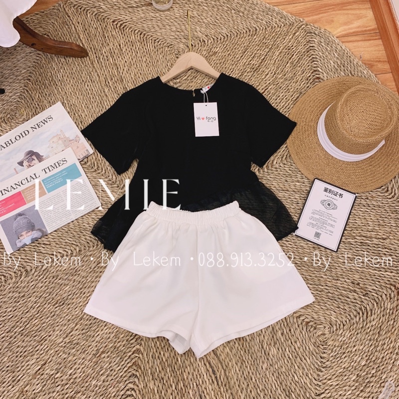 Thời Trang Nữ > Quần đùi > Quần đùi || SET quần sooc áo kiểu vạt phối ren chất mịn mát Hàng Quảng Châu