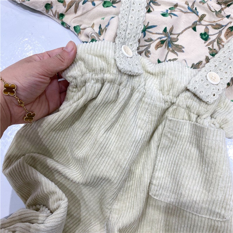 Thời trang trẻ em & trẻ sơ sinh > Quần áo bé trai > Quần > Quần yếm || Set thời trang thu đông áo búp bê + quần yếm ren vải nhung cho bé - Hàng Quảng Châu cao cấp