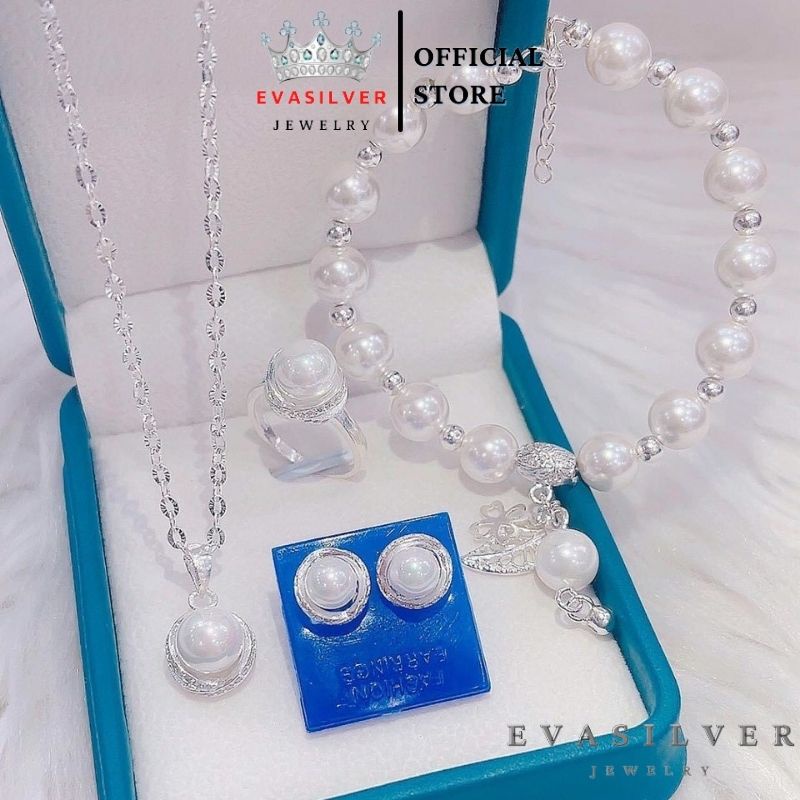 Giới thiệu Sét trang sức bạc đính đá gồm dây chuyền, vòng tay, bông tai và nhẫn - Trang sức bạc Evasilver