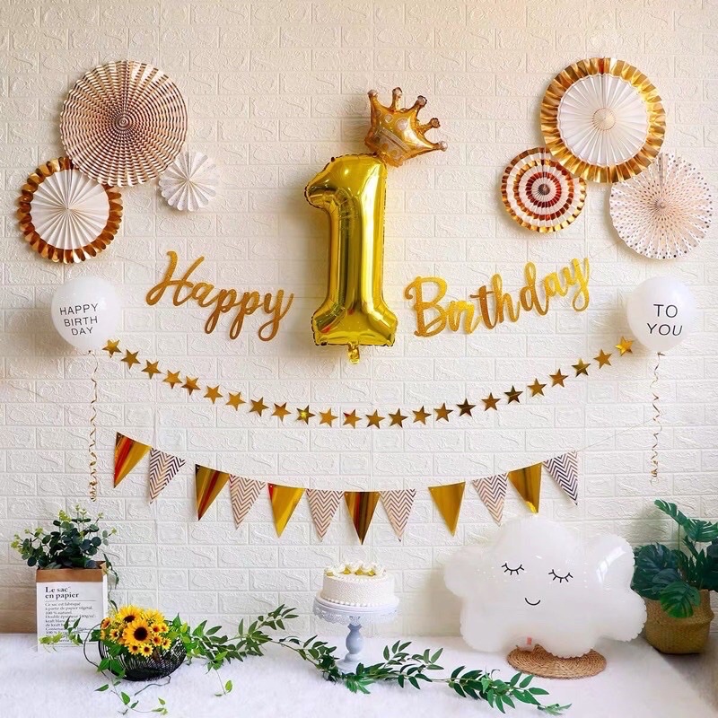 Set trang trí sinh nhật tông vàng cho bé yêu