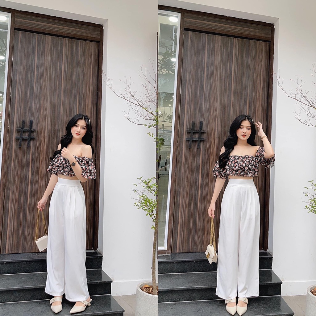 Giới thiệu Set trễ vai hoa nhí xếp tầng quần ống rộng TH753