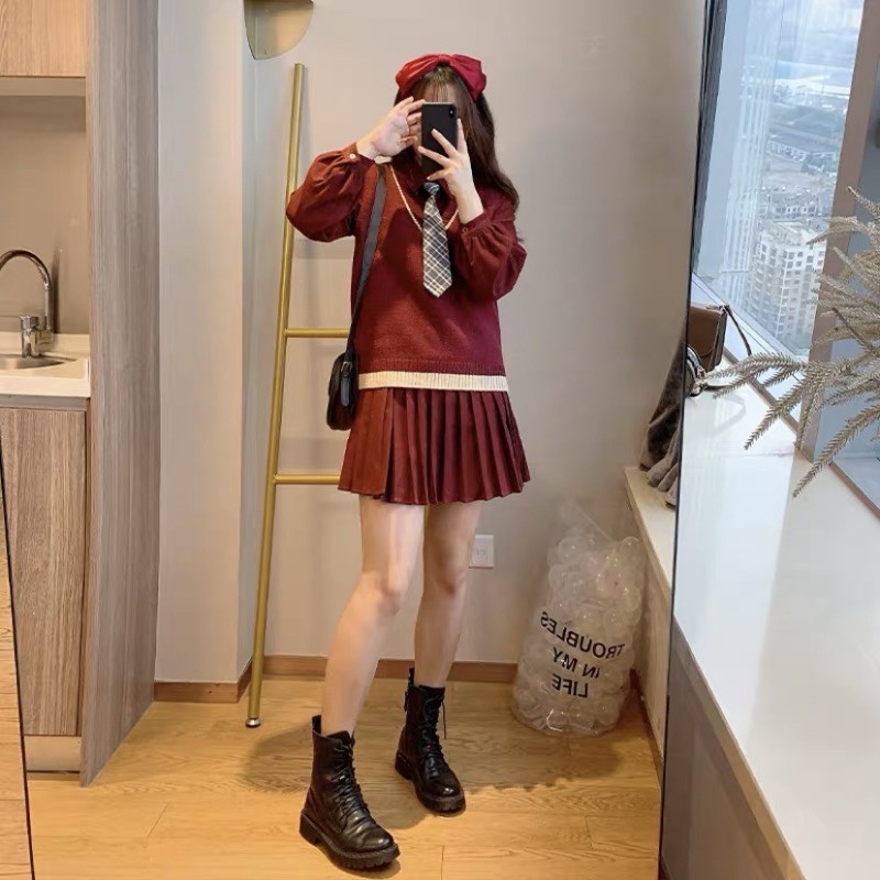 Thời Trang Nữ > Áo len || Set váy 3 món kèm gile caravat Ulzzang style Hàng Quảng Châu