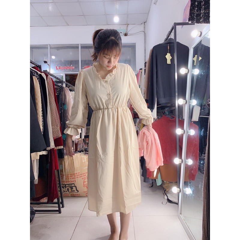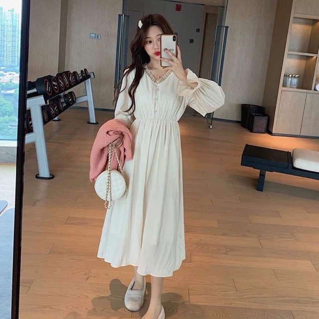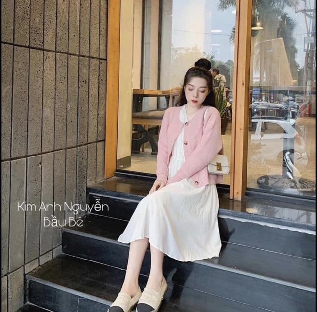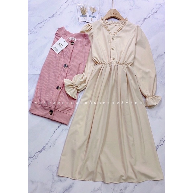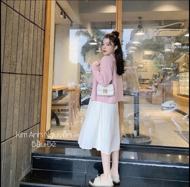 👉 Cardigan cúc to chất len tăm mềm dày đẹp nha ce. Váy dáng A xoè dài thướt tha xinh lắm ❤️